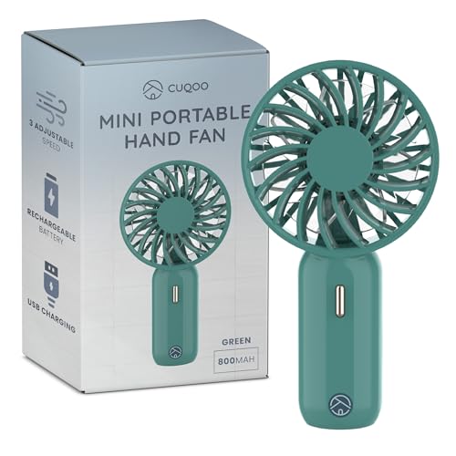 CUQOO Mini handfläkt – USB-uppladdningsbar fläkt med 800 mAh batteri och 3 hastigheter, bärbar handhållen för resor, hem, kontor, skola och daglig användning, lätt kompakt minifläkt, grön