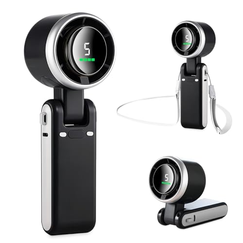MERTTURM Uppladdningsbar Bärbar Minifläkt, 3-i-1 Handhållen Personlig Fläkt, med 5 Justerbara Kraftfulla Vindhastigheter, borstlös motor, 12H Standbytid, Lämplig för Utomhusbruk/Kontor-Svart