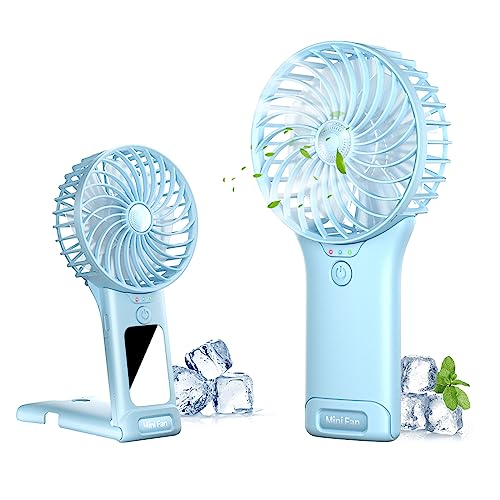OHLGT handhållen minifläkt, 3 hastigheter, uppladdningsbar, tyst handhållen minifläkt [9–15 drifttimmar], bärbar liten USB-fickfläkt, personlig fläkt med powerbank för resor, utomhus eller inomhus, blå