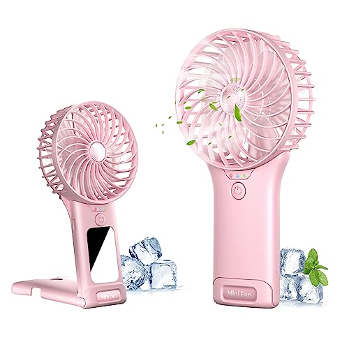 OHLGT handhållen minifläkt, 3 hastigheter, uppladdningsbar, tyst handhållen minifläkt [9–15 drifttimmar], bärbar liten USB-fickfläkt, personlig fläkt med powerbank för resor, utomhus eller inomhus, rosa
