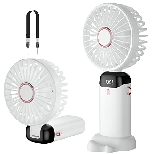 OHLGT handhållen minifläkt, 3 hastigheter, uppladdningsbar, tyst handhållen minifläkt [9–15 drifttimmar], bärbar liten USB-fickfläkt, personlig fläkt med powerbank för resor, utomhus eller inomhus, vit