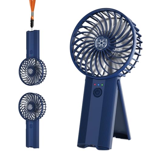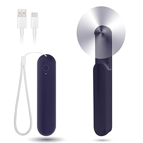 Wastou Handfläkt, uppladdningsbar USB-tyst minifläkt, bärbar Cleiner handfläkt med 4 hastigheter, batterifläkt för sovrum, kontor, resor (mörkblå)