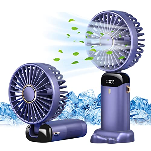 Jsdoin Handhållen bärbar fläkt, USB-uppladdningsbar, med 5 hastigheter, batteridriven minifläkt, vikbar skrivbordsfläkt med LED-display för hemmakontor, sovrum, utomhusresor (blå)