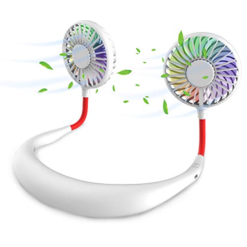 Bärbar halsfläkt, handsfree minifläkt som är uppladdningsbar med USB, personlig fläkt, skrivbordsfläkt, halsbandsfläkt med dubbla fläkthuvuden i 3 hastigheter, LED-ljus, för resor, sport, utomhus, camping, kontor (vit)