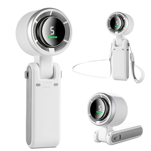 MERTTURM Uppladdningsbar Bärbar Minifläkt, 3-i-1 Handhållen Personlig Fläkt, med 5 Justerbara Kraftfulla Vindhastigheter, borstlös motor, 12H Standbytid, Lämplig för Utomhusbruk/Kontor-Vit