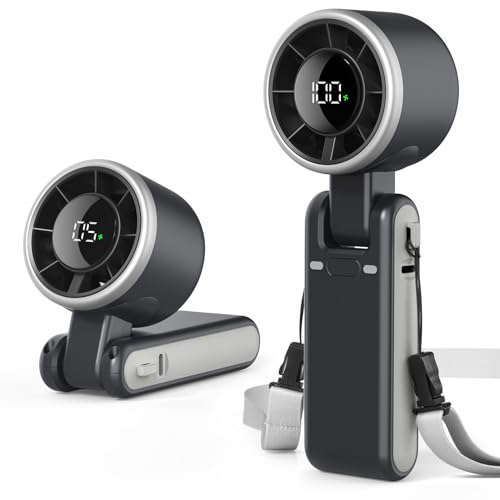 Bärbar handhållen minifläkt, vikbar kraftfull vindturbo-fläkt, 9 000 mAh batteri och 5 000 varv/min, USB-uppladdningsbar personlig fläkt med 5 hastigheter, digital display för kvinnor män resor