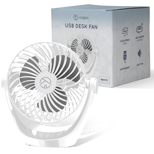 CUQOO Kraftfull USB-skrivbordsfläkt – 360° roterbar minifläkt med 3 hastighetsinställningar, kraftfull, tyst, lätt och kompakt för skrivbord, hem, kontor och resor, vit