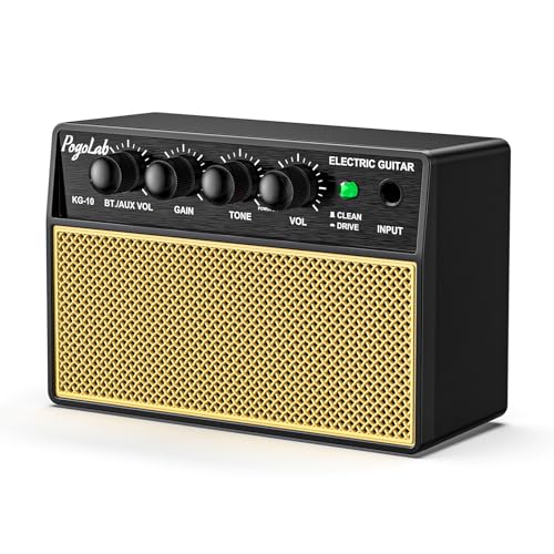 POGOLAB Mini gitarrförstärkare, 5 W, bärbara gitarrförstärkare med 2 kanaler, uppladdningsbar övningsbasförstärkare, Bluetooth-anslutning, miniförstärkare för gitarrövningar