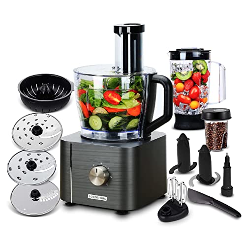 TopStrong Matberedare 1100W, multifunktionell matberedare, 11 funktioner mathackare, 3,2 liters skål och 1,5 liters behållare, minihackare Svart