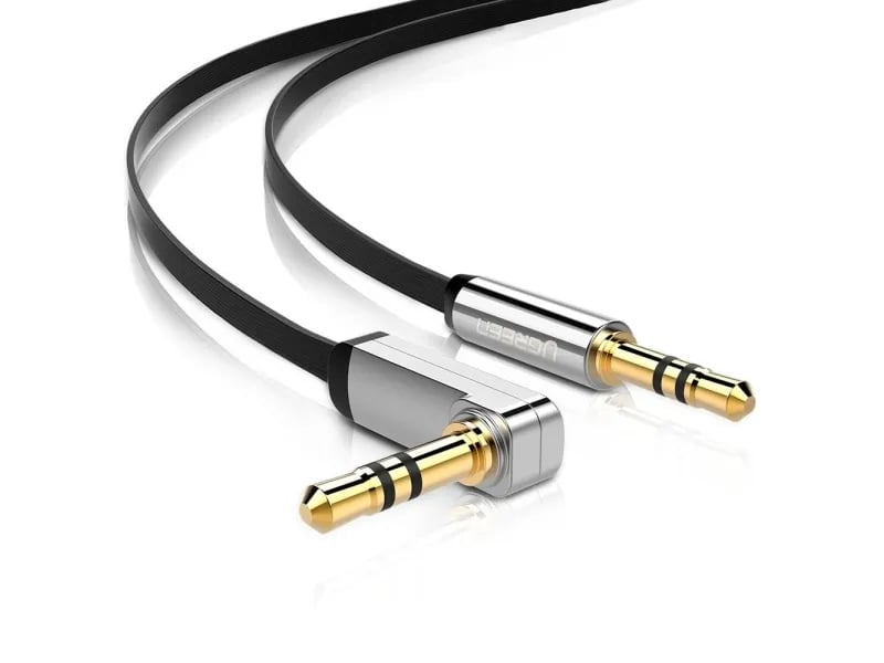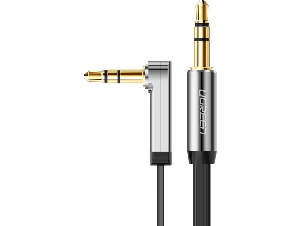 Ugreen Vinklad Minijack 3,5 Mm Aux-Kabel Ugreen Av119, Platt, 0,5 M (Svart)