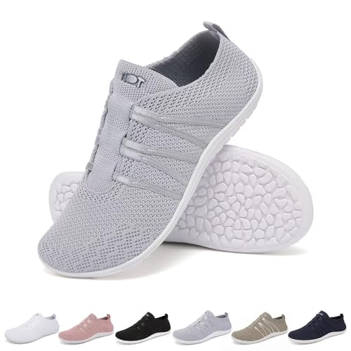 Meroo Bekväm Barfotaskor Dam Och Herr Andningsbara Sneakers Halkfria Vandringsskor Skor För Löparbana Snabbtorkande Strandskor Original Fitness Skor Minimalistiska Skor Traillöparskor Grå 40EU
