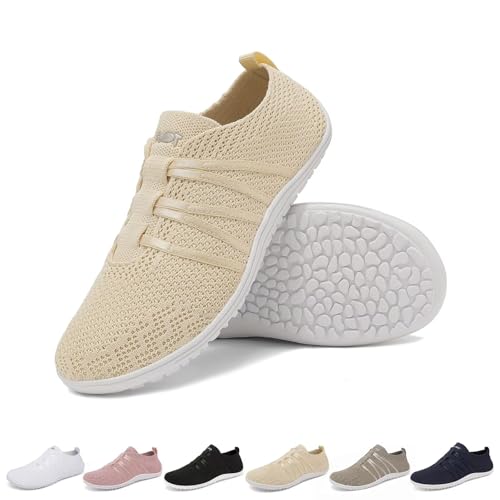 Meroo Bekväm Barfotaskor Dam Och Herr Andningsbara Sneakers Halkfria Vandringsskor Skor För Löparbana Snabbtorkande Strandskor Original Fitness Skor Minimalistiska Skor Traillöparskor Beige 41EU