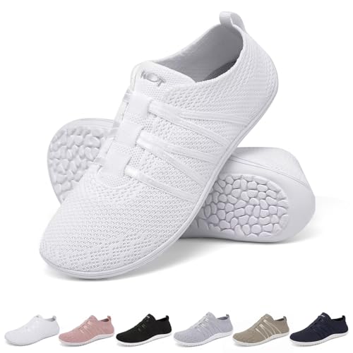 Meroo Bekväm Barfotaskor Dam Och Herr Andningsbara Sneakers Halkfria Vandringsskor Skor För Löparbana Snabbtorkande Strandskor Original Fitness Skor Minimalistiska Skor Traillöparskor Vit 38EU