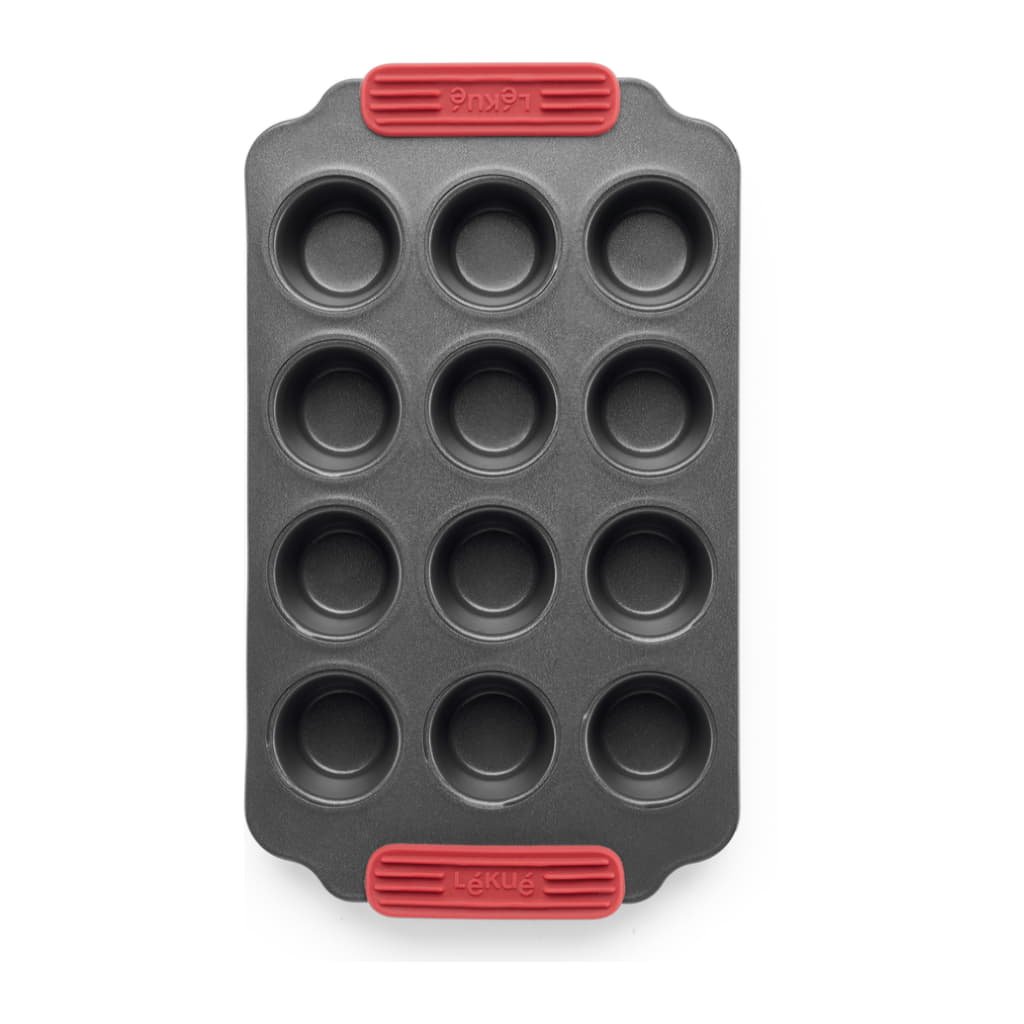 Master Chef Junior, form för 12 minimuffins med kalkonblå silikonhandtag - perfekt för bakning