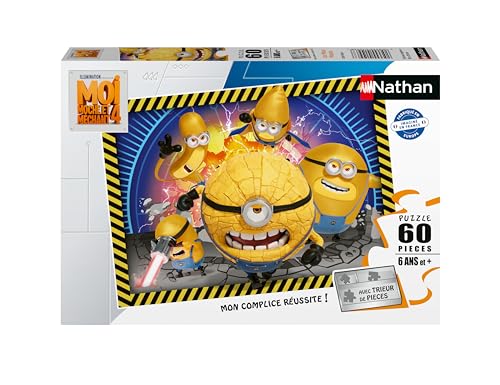 Nathan - Pussel för barn - 60 bitar - Mega Minions - Me Ugly and Evil 4 - Flicka eller pojke från 6 år - Högkvalitativt pussel - Tjock och slitstark kartong - Äventyr - 12001096