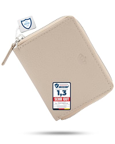 Baur Damplånbok i äkta läder | miniplånbok med RFID-skydd | liten plånbok med 6 kortfack | sedel- och myntfack | dragkedja runt om, toupe, 12 x 9 x 2 cm, Silver dragkedja