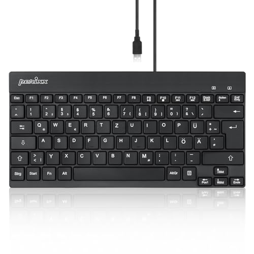 Perixx PERIBOARD-409 H, mini-tangentbord med 2 x USB-hubbar – 1,80 meter kabel med USB-kontakt – pianolack – QWERTZ DE Layout – svart singel MIT HUB svart