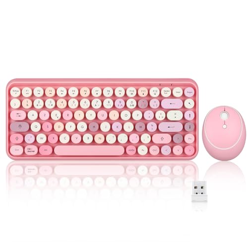 Perixx PERIDUO-713 trådlöst minitangentbord och mus-set, USB, 2,4 GHz, rundade retrostilknappar, pastellrosa, AZERTY