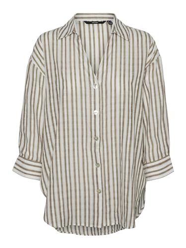 Vero Moda Damer Vmeva Hr Paperbag Cot PS shorts Noos Ga Bermudas, Snövit (ränder: silver mink), L