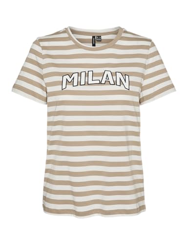 VERO MODA VMFIRA Francis SS TOP Box JRS GA, Silver mink/ränder: vit, M