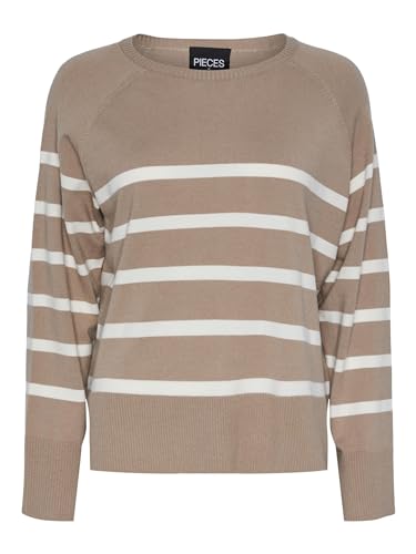 PIECES Damer Pcsia Ls polotröja stickad Noos Bc stickad tröja, Silver mink/ränder: vit, XS