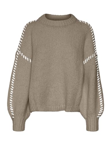 VERO MODA dam Vmfeng Ls O-hals tröja Ga Boo stickad tröja, Silver mink/detalj: w. Snövit, XS