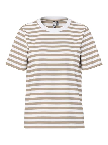 PIECES Dam Pcria Ss Tee Stripes Noos Bc T-shirt, Silver mink/ränder: ljusvit, L