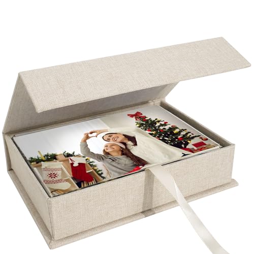 Hiwhy Fotoförvaringsbox 4 x 6, linnefotolåda, minneslåda perfekt för att lagra ditt foto, bilder, certifikat, scrapbooking-tillbehör, minnessaker och smycken beige