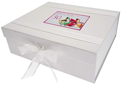 Vita bomullskort "bröllopsdag" mönstrade kärlekshjärtan bröllop stor minnessak box (NWH2X)