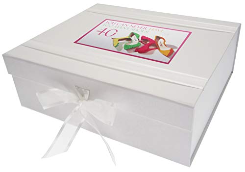 Vita bomullskort NSH40X stora"You can never have too many shoes" minnessak box - neon