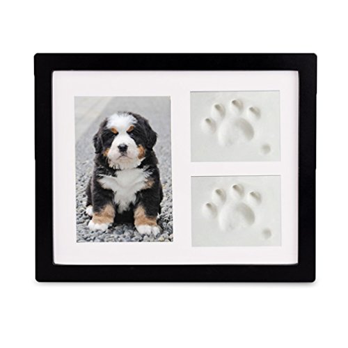 Coryfeel Hund- eller katttassavtryck husdjur minnesmärke trippel fotoram 4 x 6 med leravtryckssats, perfekt minnessak bildram för husdjursälskare svart/vit