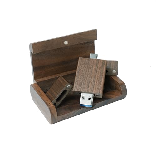 Yaxiny Låda i valnötsträ USB C USB-minne 32 GB 1 stycken, OTG USB C penna, USB 3.0 och USB C-flashenhet, typ C minnessticka för USB A+USB C Android smartphone