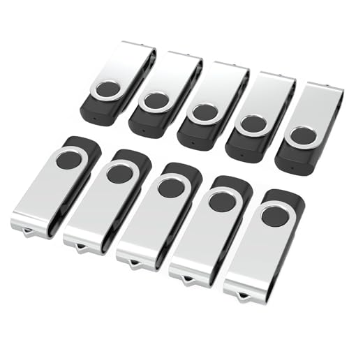 Uflatek USB-Minne 4 GB Set Med 10 USB 2.0 Flash Drive - Roterande Svart Minnessticka i Metall Med Strängar