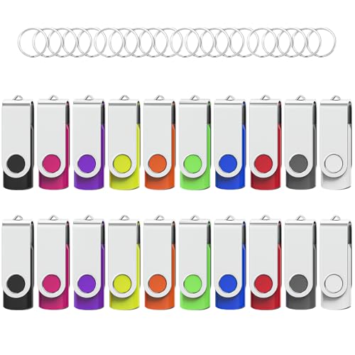 Wooolken USB-minne 1 GB 20-pack, USB-flashenhet, USB 2.0, minnessticka 1 GB USB-minne, bärbara tumenheter för PC/laptop/datalagring (med nyckelring)