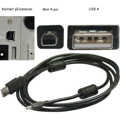 USB 2.0-kabel för digitalkamera, Sony/Olympus/Epson/Casio/HP/Kodak/Minolta, 2 meter