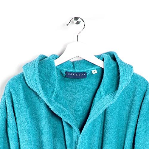 Caleffi - MINORCA morgonrock för vuxna, kvinnor/män/unisex med huva, 100% mjuk frottébomull, 400 gsm, maskintvättbar 40° + torktumlare, storlek S vattenfärg