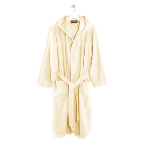 Caleffi - MINORCA morgonrock med huva | Maximal absorptionsförmåga | Certifierade giftfria färgämnen | Italiensk design sedan 1962 | Stil för varje badrum, Vanilj, S, Bomull