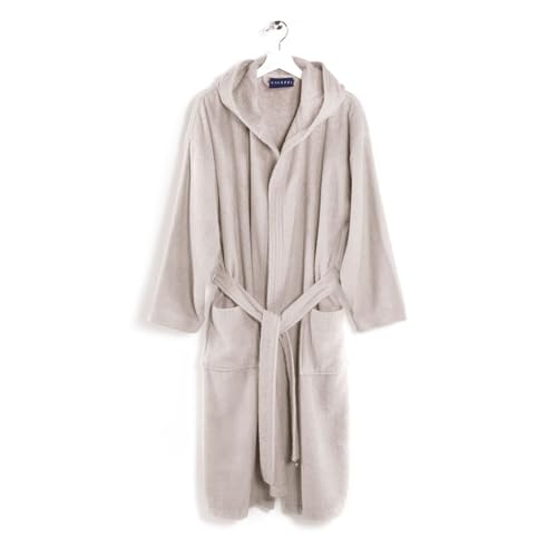 Caleffi - MINORCA morgonrock för vuxna, kvinnor/män/unisex med huva, 100% mjuk frottébomull, 400 gsm, maskintvättbar 40° + torktumlare, storlek S färg pärla