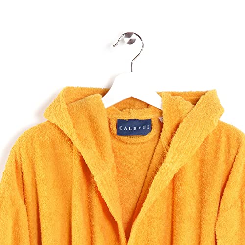 Caleffi - Minorca badrock för barn, unisex med huva, tillverkad av 100% mjuk frotté, 400 g/m², maskintvättbar vid 40 °C + torktumlare, storlek 6–8 år, färg orange