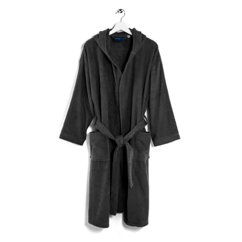 Caleffi - MINORCA Badrock med huva | Maximal absorptionsförmåga | Certifierade giftfria färgämnen | Italiensk design sedan 1962 | Lägger till stil i badrummet, Antracit, L, Bomull