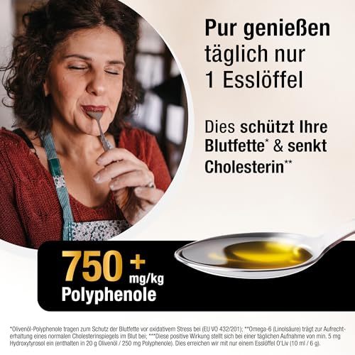 Olivoljan med hälsovärde - extra hög polyfenolhalt 750 mg/kg - ekologisk kvalitet - endast 1 matsked/dag - Olive PLUS - 500 ml - 50 portioner