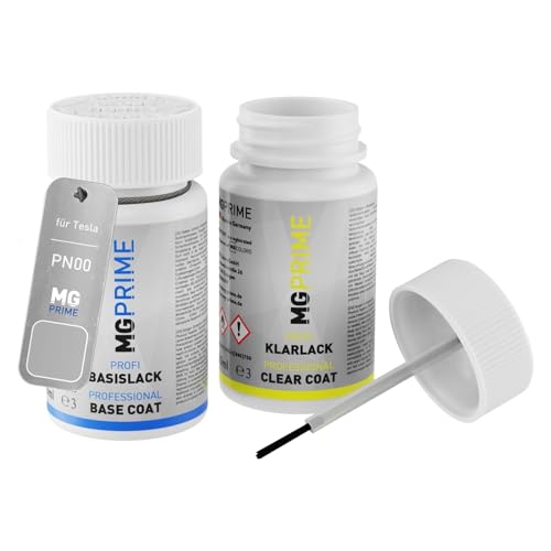 MG PRIME Billack Touch-up stick set för Tesla PMNG Steel Grey Pearl Metallic/Midnight Silver Pearl Metallic Basecoat clearcoat 50ml vardera