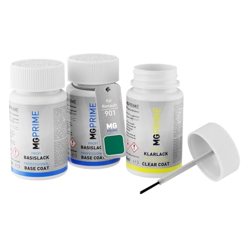 MG PRIME Billack Backstift set för Renault 901 Vert Vertigo Nacre/Vertigogrün Mica basecoat klarlack 50ml vardera