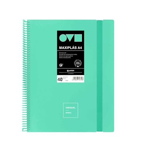 Grafoplas | A4 plastfickor | 40 genomskinliga foder | Hårda polyfoamlock | Robusta och ultralätta | Mint färg | PVC spiral | Minimal unik | Perfekt för dokument