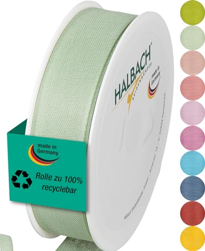 Halbach sidenband presentband | Bredd 25 mm längd 25 m | Band tillverkat i Tyskland | Presentband i olika färger och bredder, perfekt för förpackning och dekoration, färg: mint