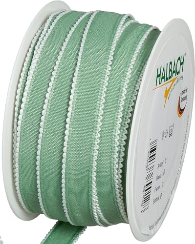 Halbach Sidenband dekorativt band bomullsoptik med bågkant, bredd: 15 mm längd: 25 m, band för att dekorera och dekorera presenter och festliga tillfällen, gör-det-själv dekorband, färg: mint/vit