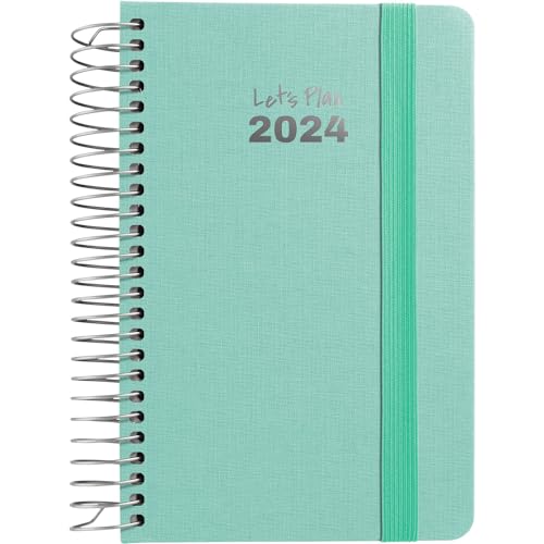 Grafoplás | A6 Dag Agenda | 2024 | Svenska | 10,5x16,5cm | Hårt lock | Tyg Cover | Färg Mint | Elastisk stängning | Fancy-serien