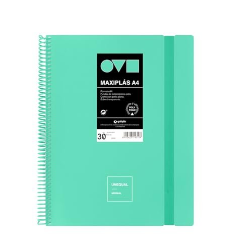 Grafoplas | A4 plastfickor | 30 genomskinliga foder | Hårda polyfoamlock | Robusta och ultralätta | Mint färg | PVC spiral | Minimal unik | Perfekt för dokument