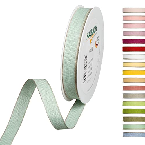 Halbach Sidenband dekorationsband med linnekanter bredd: 15 mm längd 20 m, presentband för utsmyckning hantverk eller design, gör-det-själv dekorband, färg: mint/linne
