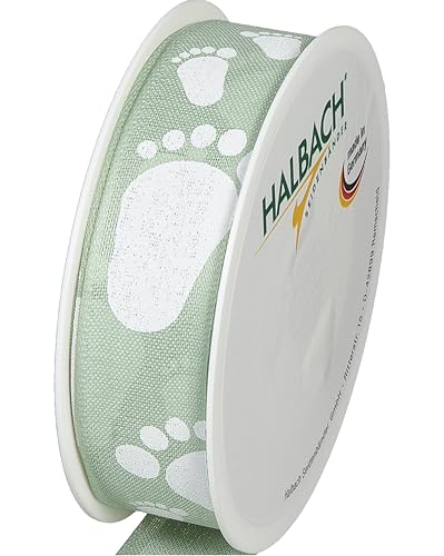 Halbach sidenband presentband baby | 25 mm x 16 m | Band som dekoration för babyparty och för förpackning av presenter till babyshower | Färg: mint/vit
